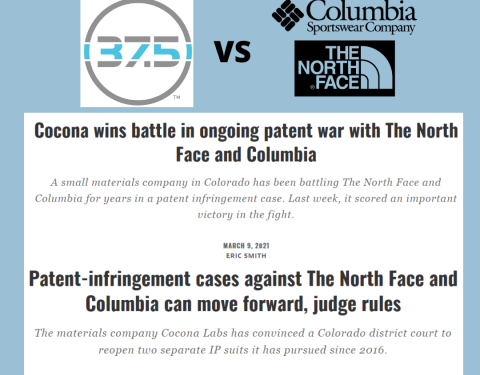 Patent Infringement Cases Against Columbia and North Face move forward…Cocona Labs alleges Infringement of Thermoregulating Technology!
